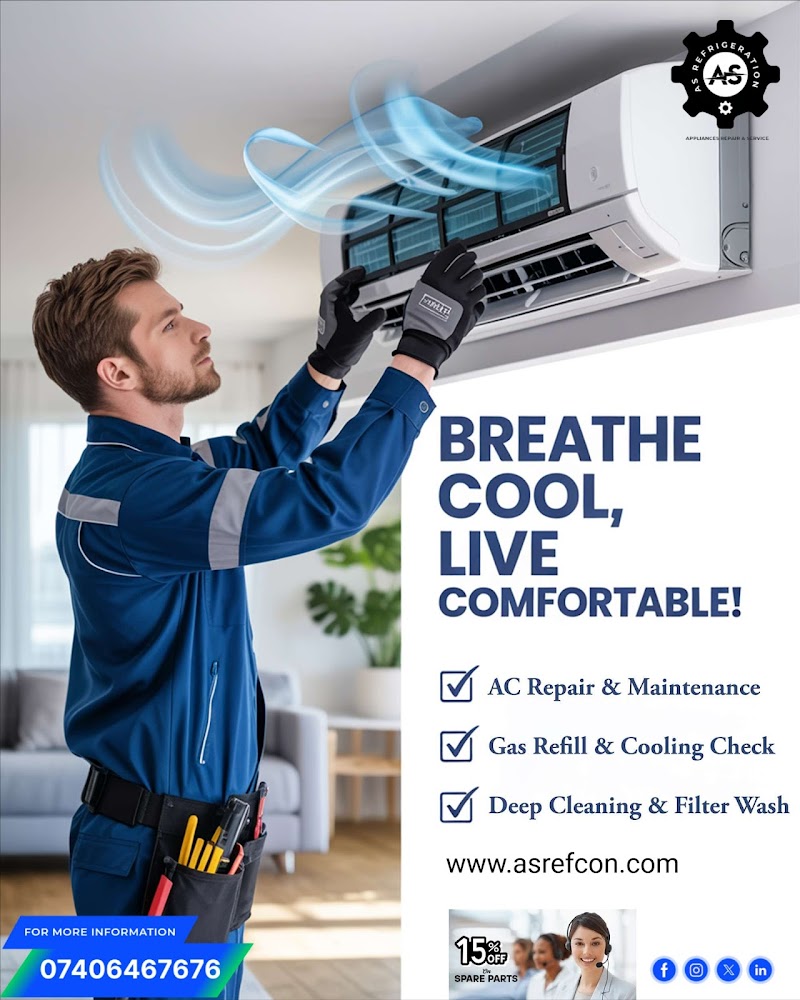 As Refrigeration is a trusted and professional AC repair and servicing company based in Muneshwara Nagar, Bengaluru. Specialising in a comprehensive range of AC services including Split AC Repair, Window AC Repair, AC Gas Filling, AC Service, they cater to both residential and commercial customers a...