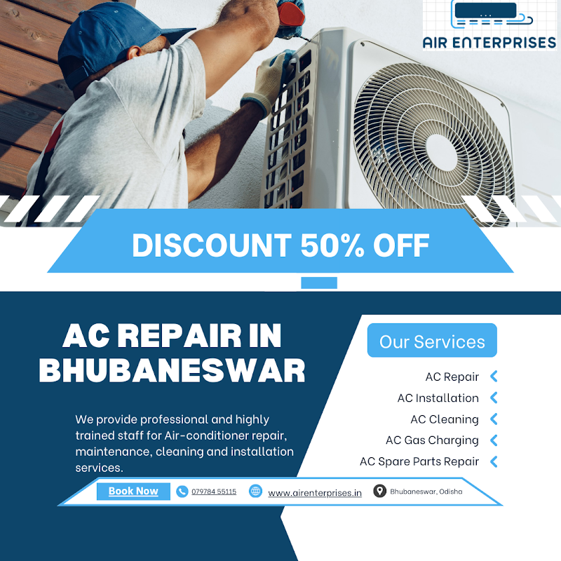 Air Enterprises Service Center In Bhubaneswar is a trusted and professional AC repair and servicing company based in Saheed Nagar, Bhubaneswar. Specialising in a comprehensive range of AC services including Split AC Repair, Window AC Repair, AC Gas Filling, AC Service, they cater to both residential...