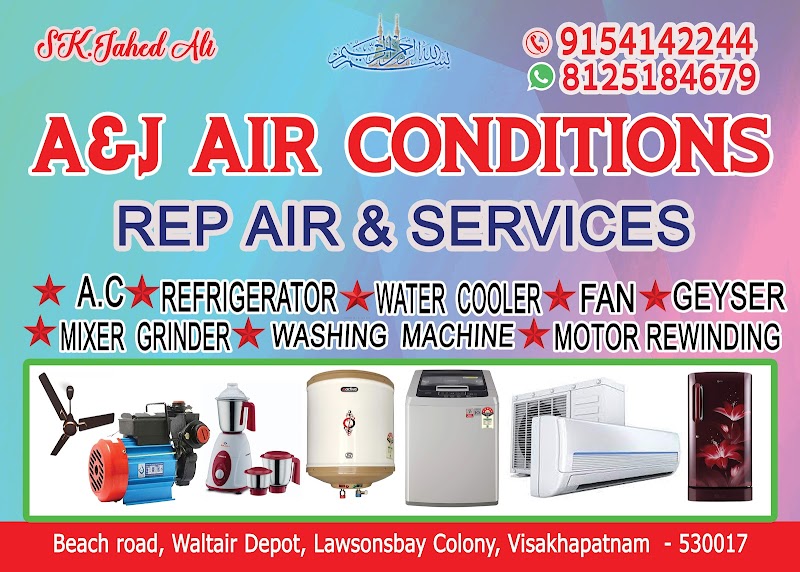 A&J AIR CONDITION A/C Refrigerator Repair Shop is a trusted and professional AC repair and servicing company based in Jalari Peta, Visakhapatnam. Specialising in a comprehensive range of AC services including Split AC Repair, Window AC Repair, AC Gas Filling, AC Service, they cater to both residenti...