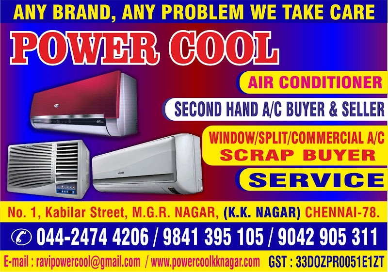 Power Cool is a trusted and professional AC repair and servicing company based in K. K. Nagar, Chennai. Specialising in a comprehensive range of AC services including Split AC Repair, Window AC Repair, AC Gas Filling, AC Service, they cater to both residential and commercial customers across Chennai...